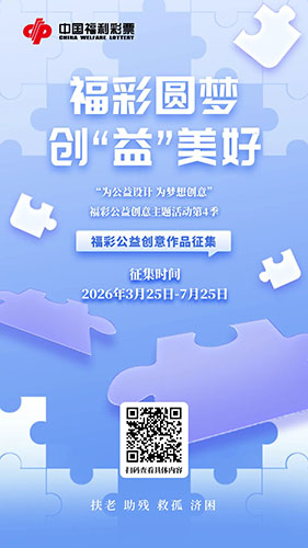 福彩圓夢,創(chuàng)“益”美好。中國福彩“為公益設(shè)計·為夢想創(chuàng)意”第四屆公益創(chuàng)意主題活動煥新登場,邀您通過海報、視頻、攝影等形式,講述福彩“扶老、助殘、救孤、濟困”的初心,展現(xiàn)福彩責任擔當,科普福彩知識,定格真實動人的公益瞬間。