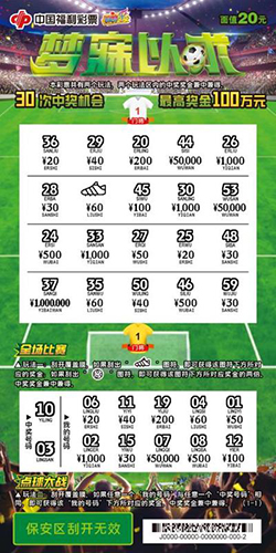 “夢(mèng)寐以求”游戲,面值20元,最高獎(jiǎng)金100萬(wàn)元,共有兩個(gè)玩法,兩個(gè)玩法區(qū)內(nèi)的中獎(jiǎng)獎(jiǎng)金兼中兼得。玩法一:刮開(kāi)覆蓋膜,如果刮出"