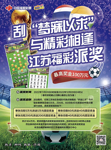 5、活動(dòng)僅限江蘇地區(qū)各福彩代銷點(diǎn)銷售的“夢(mèng)寐以求”即開(kāi)型福利彩票游戲。
