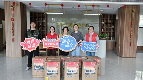 當(dāng)天上午,福彩志愿者與社區(qū)志愿者前往玖玖江南康養(yǎng)中心,看望慰問老人們,并送去8箱護(hù)理墊用于日常照護(hù)。福彩志愿者表示,前期與社區(qū)溝通后,了解到該中心全失能人員占比較多,日常照護(hù)物資消耗大,所以及時(shí)聯(lián)系各方促成了此次捐贈(zèng)行動(dòng),為助力養(yǎng)老工作貢獻(xiàn)福彩之力。