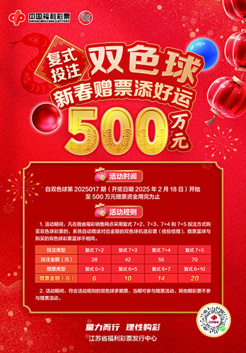 福啟新歲,萬(wàn)象更新。江蘇福彩為廣大購(gòu)彩者準(zhǔn)備了新春的第一波小幸運(yùn)。自雙色球第2025017期(開(kāi)獎(jiǎng)日期2025年2月18日)起,雙色球游戲新春贈(zèng)票活動(dòng)開(kāi)始啦!
