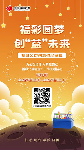 為促進公益文化傳播,傳遞社會正能量,宣傳福彩扶老、助殘、救孤、濟困的發(fā)行宗旨,傳播公益、責任、陽光福彩品牌核心價值,深化公益、慈善、健康、快樂、創(chuàng)新的福彩文化,中國福利彩票發(fā)行管理中心特舉辦為公益設計·為夢想創(chuàng)意第三屆公益創(chuàng)意主題活動。活動主題為福彩圓夢·創(chuàng)未來,征集海報、視頻、攝影作品等公益創(chuàng)意作品,匯聚創(chuàng)新設計,普及公益理念,共同營造人人公益,隨手公益社會和諧氛圍。