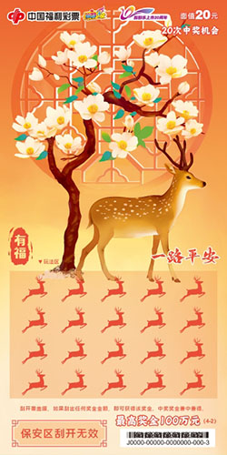 刮刮樂新游戲“有福”,一套4枚,分別是“繁花似錦”、“一路平安”、“馬到成功”、“喜上眉梢”,票面精美,寓意美好,選取錦鯉、梅花鹿、駿馬和喜鵲為創(chuàng)作元素,搭配牡丹、梅花等吉祥花卉,別具特色的“國潮”風(fēng)格,洋溢著濃郁的文化魅力。