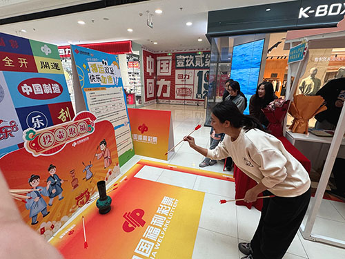在互動游戲區(qū),投壺取福這項趣味活動收獲了大批粉絲,為大家?guī)頍o盡歡樂。參與游戲并投中者還可獲得一份刮刮樂獎品,在輕松娛樂的同時,期待一份好運的降臨。