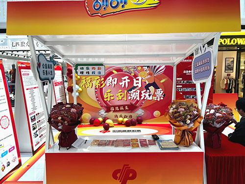 幸運打卡區(qū)集合了各種潮玩元素,喜慶的自拍墻、精美的刮刮樂花束吸引了不少市民打卡。展區(qū)還介紹了全省快樂8“福運雙至 快樂加倍活動,并發(fā)布了溧陽福彩銷售網(wǎng)點招募令。