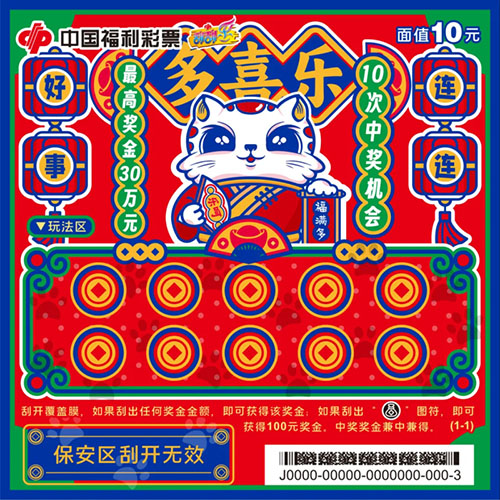 傳統(tǒng)中國紅撞上國潮,刮刮樂新票“多喜樂”在江蘇上市,10元、20元兩種面值供您選擇,最高獎金80萬元。