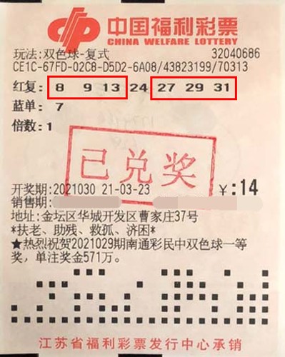 據(jù)了解,該注二等獎出自金壇區(qū)華城開發(fā)區(qū)32040686福彩銷售點。中獎?wù)咧芟壬ɑ┦歉2实睦吓笥眩瑢Ω黝愅娣ǘ加猩娅C。當期他在店里花14元隨機投注了一組雙色球復式號碼,經(jīng)與開獎號碼“紅球08、09、13、27、29、31,藍球05”核對,幸運攬獲1注二等獎和6注四等獎,共中得獎金19.9萬多元。