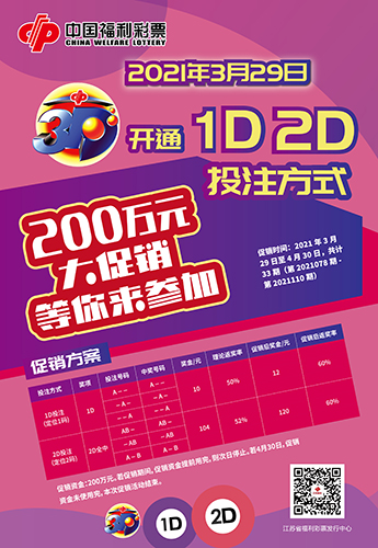 為使廣大購彩者盡快熟悉1D2D投注方式,省福彩中心自2021329日起,對(duì)1D2D投注方式開展促銷活動(dòng)。