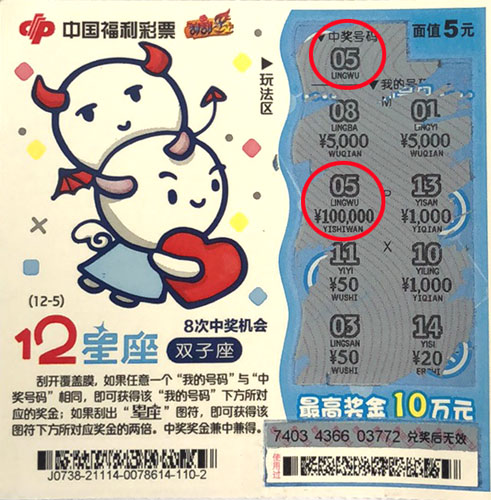 近日,福彩刮刮樂又向市民朋友派發(fā)頭獎(jiǎng)福利,一位幸運(yùn)市民在“12星座”彩票中刮出頭獎(jiǎng)10萬元。