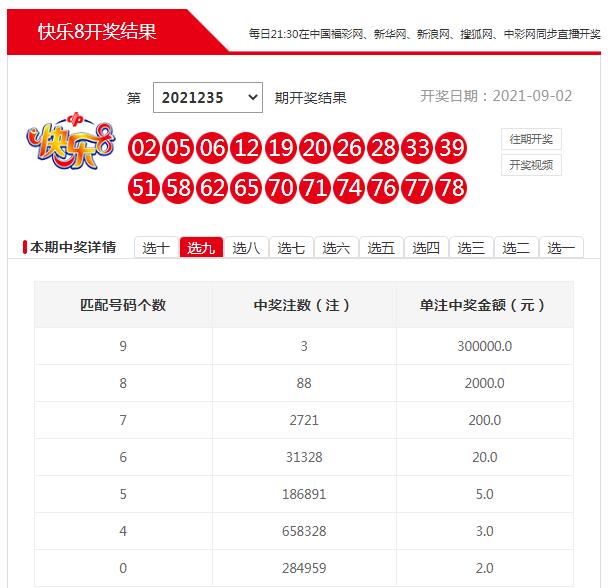據(jù)了解,該獎(jiǎng)出自武進(jìn)區(qū)雪堰鎮(zhèn)32040522福彩銷售點(diǎn),中獎(jiǎng)?wù)邉⑾壬ɑ┦且晃桓2世戏郏瑢?duì)新游戲快樂8興趣濃厚。9月2日是快樂8第2021235期的開獎(jiǎng)日。當(dāng)期劉先生在店里花6元手選投注了3組選九單式號(hào)碼,結(jié)果中得1注“選九中九”,攬獲獎(jiǎng)金30萬元,另中得2注“選九中四”,攬獲獎(jiǎng)金6元。