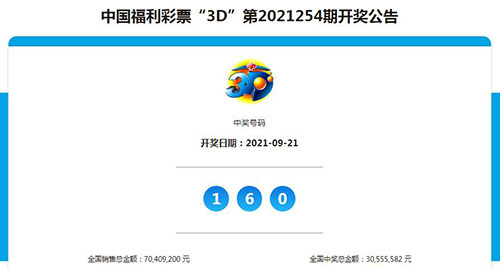 近日,我市福彩各票種喜報(bào)頻傳。9月21日,又有一位幸運(yùn)市民在3D第2021254期攬獲獎(jiǎng)金21萬(wàn)元。
