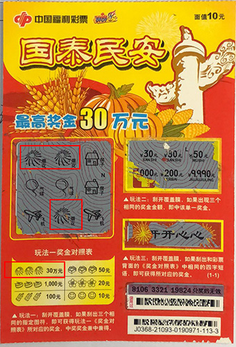 9月26日,又有一位幸運市民前來兌取“國泰民安”30萬元頭獎。中獎者朱先生(化名)則是一位刮刮樂愛好者,平時會經常購買。這次在一張“國泰民安”彩票的玩法一中刮出3個相同的煙花圖符,根據(jù)游戲規(guī)則中得高獎金30萬元。