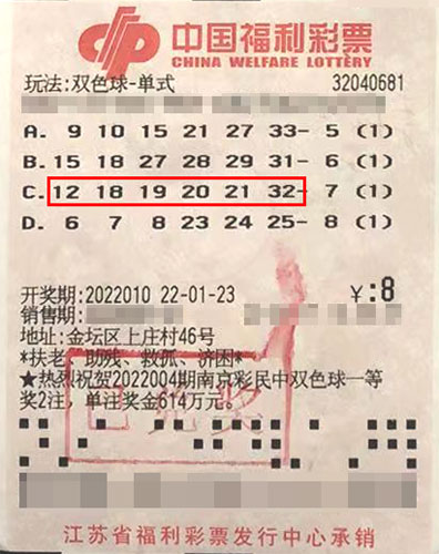 據(jù)了解,該獎(jiǎng)出自金壇區(qū)32040681福彩投注站。當(dāng)期幸運(yùn)市民在店里花8元錢(qián)隨機(jī)投注了4組單式號(hào)碼,開(kāi)獎(jiǎng)后經(jīng)與開(kāi)出的“紅球12、18、19、20、21、32,藍(lán)球15”核對(duì),其中一組紅球全數(shù)命中,擒獲1注二等獎(jiǎng),喜攬獎(jiǎng)金18.1萬(wàn)余元。