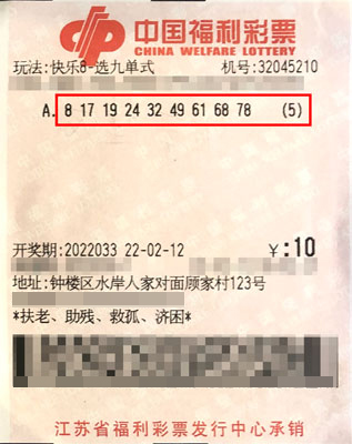據(jù)了解,大獎(jiǎng)出自鐘樓區(qū)水岸人家32045210福彩銷售點(diǎn),中獎(jiǎng)?wù)?/span>齊先生(化名)是福彩的十年鐵粉,購彩經(jīng)驗(yàn)豐富,熱愛雙色球,3D等電腦型票種,快樂8上市后就被深深吸引,每期必買。2月12日一早,他來到站點(diǎn)守號(hào)購買了一組選九單式號(hào)碼,進(jìn)行了5倍投注,結(jié)果開獎(jiǎng)中得5注選九中九,單注獎(jiǎng)金60萬元,共計(jì)攬獲獎(jiǎng)金300萬元!