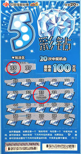 “5彩鉆”是以5個(gè)華彩炫目、美輪美奐的鉆石為主題設(shè)計(jì)的一款五聯(lián)票。該票面值20元,共有20次中獎機(jī)會,最高獎金100萬元,玩法也簡單易懂:刮開覆蓋膜,如果任意一個(gè)“我的號碼”與任意一個(gè)“中獎號碼”相同,即可獲得該“我的號碼”下方所對應(yīng)的獎金;如果刮出“鉆石”圖符,即可獲得該圖符下方所對應(yīng)獎金的5倍。中獎獎金兼中兼得。