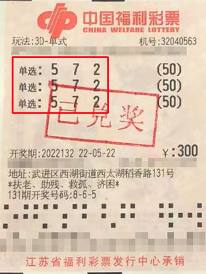 據(jù)了解,該中獎(jiǎng)?wù)卟滔壬ɑ┦且晃磺嗄瓴视眩?dāng)期他在武進(jìn)區(qū)西湖街道32040563福彩投注站對(duì)號(hào)碼“572”進(jìn)行了150倍單選投注,結(jié)果幸運(yùn)擊中開獎(jiǎng)號(hào)碼,攬獲獎(jiǎng)金15.6萬元。