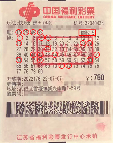 據(jù)了解,該獎(jiǎng)出自武進(jìn)區(qū)雪堰鎮(zhèn)32040434福彩投注站。當(dāng)期幸運(yùn)市民小朱(化名)在店里自選了一組“選五四膽全拖”號(hào)碼,并進(jìn)行了5倍投注,幸運(yùn)中得80注“選五中五”、300注“選五中四”,共計(jì)攬獲獎(jiǎng)金8.6萬余元。