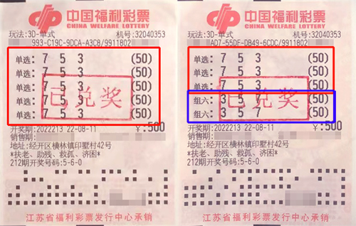 據(jù)了解,該獎出自經(jīng)開區(qū)橫林鎮(zhèn)32040353福彩投注站。幸運市民孫先生(化名)是福彩的老朋友,當期他在店里休閑時,瞄準了號碼“7、5、3”進行投注,開獎后經(jīng)核對,共計中得400注單選和100注組六,合計攬獲獎金43.33萬元。