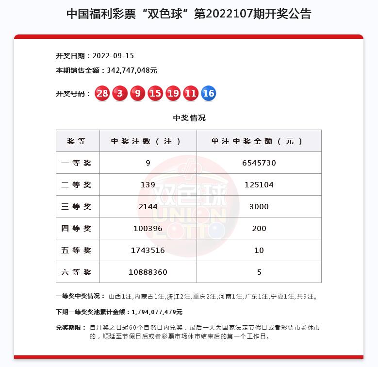 9月15日晚,雙色球第2022107期開(kāi)出紅球03、09、11、15、19、28,藍(lán)球16。當(dāng)期我市喜出1注二等獎(jiǎng),單注獎(jiǎng)金12.5萬(wàn)余元。
