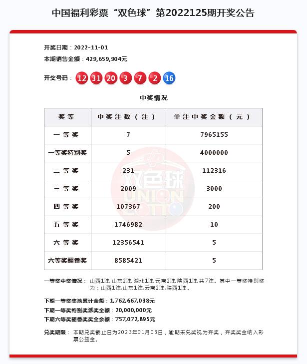 111日晚,雙色球第2022125期開出紅球237122031,藍(lán)球16。當(dāng)期我市兩位幸運(yùn)市民各自攬獲1注二等獎。