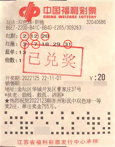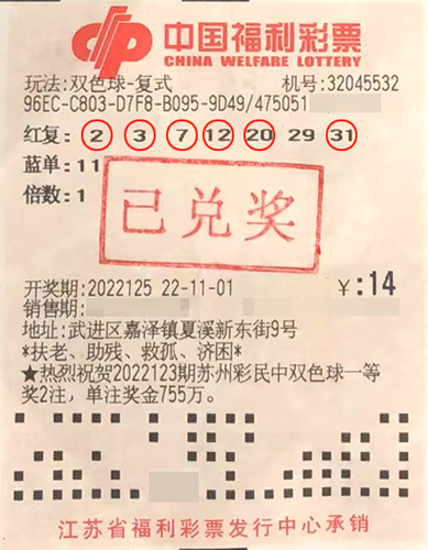 據(jù)了解,其中一張中獎彩票出自武進(jìn)區(qū)嘉澤鎮(zhèn)32045532福彩投注站,是一張花費(fèi)14元的復(fù)式票。開獎后經(jīng)核對,該彩票中得1注二等獎、6注四等獎,共計中得獎金11.3萬余元。