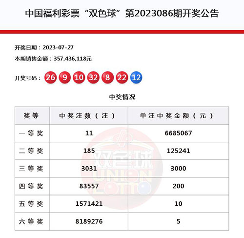 近日,一位幸運市民在雙色球第2023086期攬獲1注二等獎,中得獎金12.5萬余元。
