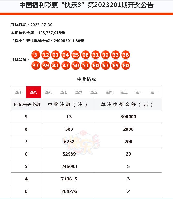 近日,一位幸運市民在快樂8游戲第2023201期通過選九復式玩法獲獎200余注,喜納獎金37.7萬余元。