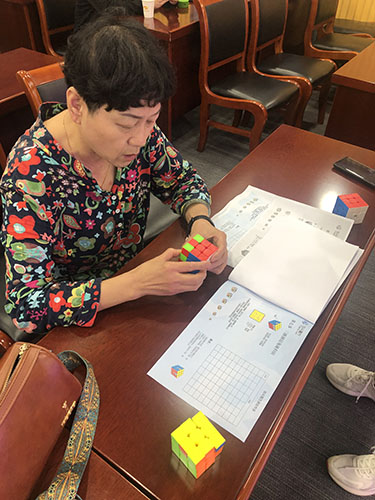 培訓活動贏得了選手們的交口稱贊。67歲的朱阿姨談到魔方,有很多感慨:“參加魔方比賽原本是希望保持頭腦敏捷,預防老年癡呆。參加培訓后,發(fā)現(xiàn)魔方運動還可以培養(yǎng)耐心和堅持的精神。每次擰對一面,我都會不由自主地笑出來,很有成就感!”