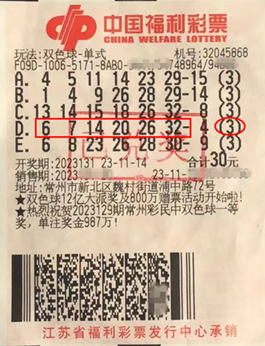 1114日,雙色球第2023131期開出紅球6714202632,藍(lán)球1。其中,二等獎中出140注,單注獎金26.6萬余元。當(dāng)期一位購彩者在新北區(qū)魏村32045868福彩投注站,手選五組單式號碼并分別進(jìn)行了3倍投注,沒想到其中一組紅球全中,擊中3注二等獎,共計(jì)攬獲獎金79.8萬余元。