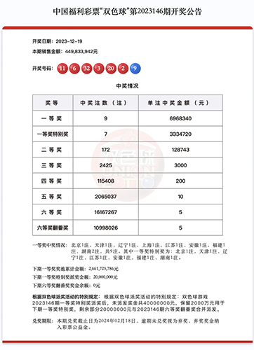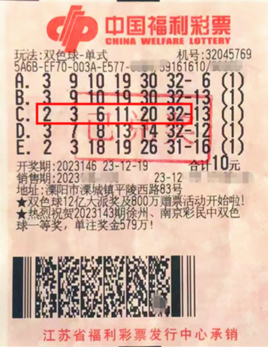12月19日,福彩雙色球第2023146期開出紅球2、3、6、11、20、32,藍(lán)球9。當(dāng)期我市一位幸運(yùn)市民喜中1注二等獎,攬獲獎金12.8萬余元。