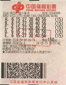據(jù)了解,該獎出自金壇區(qū)32040668福彩投注站。幸運市民周小姐(化名)在同事的影響下加入彩友大家庭,大家平時愛玩電腦票和刮刮樂。當期她在店里投注一組選六單式號碼并進行了330倍投注,幸運中得330注“選六中六”,共計攬獲獎金99萬元。