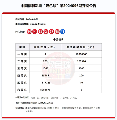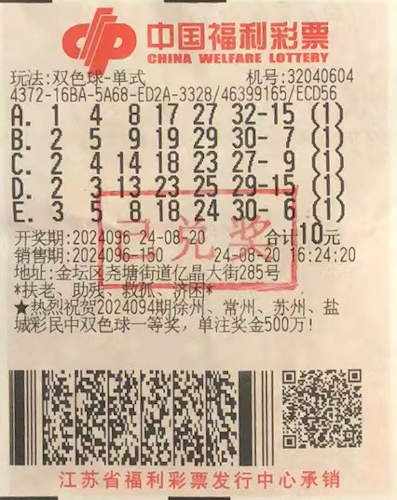8月20日,我市一位幸運購彩者在雙色球第2024096期擊中1注二等獎,喜攬獎金12.59萬余元。