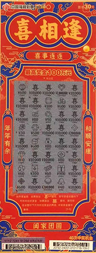 據(jù)了解,中獎者陳先生(化名)是一位刮刮樂愛好者,近日他在福彩投注站購彩時,在一張30元面值的“喜相逢”中刮出20個“喜”圖符,按照游戲規(guī)則,中得對應獎金20萬元。陳先生表示,“喜相逢”這個系列的刮刮樂票面喜慶,寓意也好。刮票時,眼看著“喜”字一個一個蹦出來,心也跟著“咚咚”狂跳,刮出這么大一個獎,也算是“喜”從天降了。