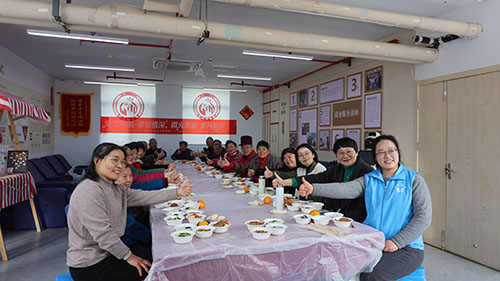 臨近正午,一樓活動室的長桌宴早已準(zhǔn)備就緒。志愿者們與愛心商戶分工協(xié)作,采購新鮮食材精心烹制家常菜,一道道熱氣騰騰的菜肴端上餐桌,搭配“我最難忘的鄰里故事”“我的家鄉(xiāng)味道”等話題卡,讓老人們在懷舊背景音樂中暢聊心聲、共話家常。餐桌上的歡聲笑語、鄰里間的溫情問候,構(gòu)成了一幅“翠鄰?fù)?/span>”的和諧畫卷,也讓福彩公益的溫度在煙火氣中自然流淌。