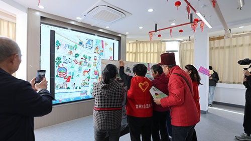 活動當(dāng)天翠南社區(qū)二樓多功能室暖意融融。志愿者們身著紅馬甲熱情迎賓,為每位參與者佩戴“讓美好相鄰而生”定制貼畫,引導(dǎo)大家在簽到墻上留下暖心寄語。循環(huán)播放的“生命故事館”短片勾勒出歲月沉淀的感動,“故事角”里志愿者與老人促膝長談,認真記錄下他們的人生感悟與美好期盼,為活動奠定了溫情脈脈的基調(diào)。