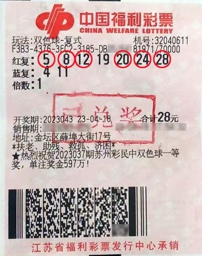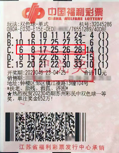 另一位幸運市民小朱(化名)則在雙色球第2023046期中得1注二等獎。據了解,小朱是位新彩友,當期他在鐘樓區(qū)鄒區(qū)鎮(zhèn)32045286福彩投注站,花10元錢投注了5組單式號碼,開獎后經核對,其中1組號碼中得二等獎,攬獲獎金17.4萬余元。
