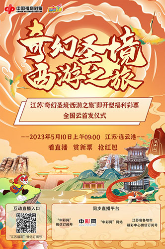 2023年5月10日上午9:00,江蘇“奇幻圣境·西游之旅”即開(kāi)型福利彩票全國(guó)云首發(fā)儀式將在線上與大家見(jiàn)面。