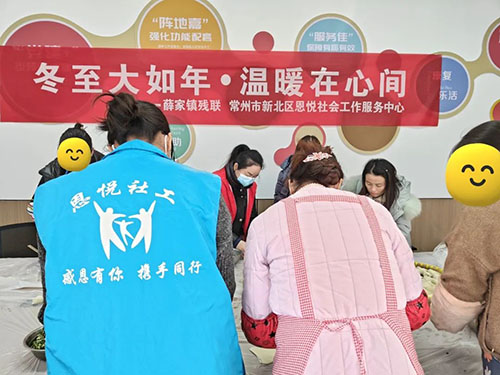 為讓康復員了解傳統(tǒng)佳節(jié),鍛煉動手操作和溝通表達能力,冬至當天,常州市福彩中心聯(lián)合恩悅社會工作服務中心開展“冬至大如年·溫暖在心間”主題活動,使康復員切實感受到來自社會大家庭的溫暖和關愛。