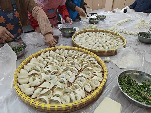 在新北區(qū)薛家德康驛站活動室內,社工老師現(xiàn)場教學,手把手指導康復員們包餛飩。大家探討交流,彼此配合,努力包出最好的餛飩。人多力量大,不多時,餛飩便碼了一盤又一盤。品嘗著親手做的餛飩,康復員們的臉上綻放出滿足和自豪的笑容。