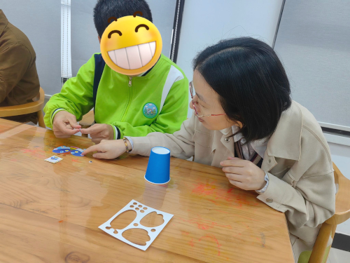 在活動室里,小陽與志愿者愉快地攀談,傾訴最近的身邊人身邊事,也發(fā)表自己的意見與觀點。在志愿者的陪同下,他專注而耐心地做起手工,鍛煉自己的動手能力。