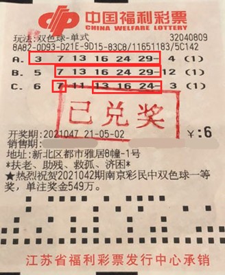 5月2日晚,雙色球第2021047期開出紅球03、07、13、16、24、29,藍(lán)球01。當(dāng)期又有兩位市民好運爆棚,各自收獲1注二等獎。據(jù)了解,其中一位中獎?wù)咝£悾ɑ┦遣式?/span>“新人”,閑暇之余喜歡隨機投注幾注,放松心情。當(dāng)期他在新北區(qū)都市雅居32040809福彩投注站,花6元隨機投注了3注單式號碼,沒想到注注“開花結(jié)果”,中得1注二等獎、1注四等獎和1注五等獎,共計收獲獎金11.9萬多元。