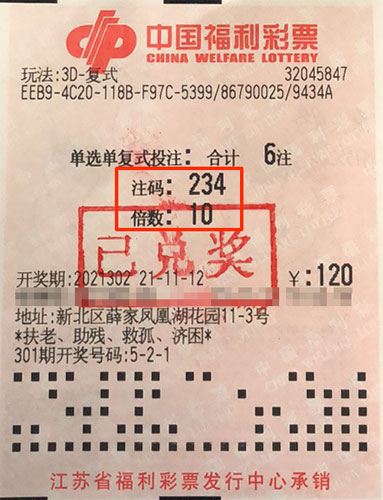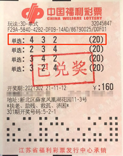 據(jù)了解,該獎(jiǎng)出自新北區(qū)薛家32045847福彩投注站。當(dāng)期幸運(yùn)市民小陳(化名)在店里圍繞“4、3、2”三個(gè)號(hào)碼進(jìn)行投注,幸運(yùn)中得130注單選,共計(jì)中得獎(jiǎng)金13.5萬(wàn)余元。