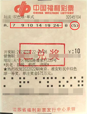 3月6日晚,雙色球第2022024期開(kāi)出紅球07、09、10、14、19、24,藍(lán)球15。當(dāng)期幸運(yùn)市民劉先生(化名)在天寧區(qū)桃園路32045104福彩投注站,憑經(jīng)驗(yàn)自選了1組單式號(hào)碼,并進(jìn)行了5倍投注。開(kāi)獎(jiǎng)后經(jīng)核對(duì),這組號(hào)碼紅球全中,一舉擒獲5注二等獎(jiǎng),共計(jì)中得獎(jiǎng)金93.7萬(wàn)余元。