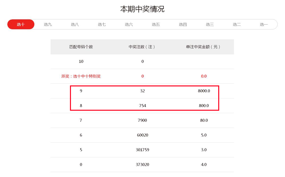 目前,快樂8全國(guó)5.2億元派獎(jiǎng)活動(dòng)正在火熱進(jìn)行中,活動(dòng)設(shè)立“選十中十”特別獎(jiǎng),單注獎(jiǎng)金最高可中1000萬(wàn)元;設(shè)立“選九中九”特別獎(jiǎng),單注獎(jiǎng)金最高可中60萬(wàn)元;設(shè)立特定玩法獎(jiǎng)上獎(jiǎng),對(duì)選一、選二、選五(中五)、選六(中六)、選九(中零)、選十(中零)共六種玩法進(jìn)行派獎(jiǎng)。