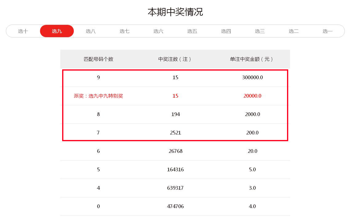 根據(jù)快樂8全國(guó)5.2億元派獎(jiǎng)活動(dòng)規(guī)則,當(dāng)期全國(guó)共中出15注“選九中九”,按中獎(jiǎng)注數(shù)均分“選九中九”特別獎(jiǎng)30萬(wàn)元派獎(jiǎng)獎(jiǎng)金,單注可獲得派獎(jiǎng)獎(jiǎng)金2萬(wàn)元,因此吳先生中得的1注“選九中九”獎(jiǎng)金由原本的30萬(wàn)元增加至32萬(wàn)元;另外,派獎(jiǎng)期間“選六中六”獎(jiǎng)金含金量也有所上漲,單注獎(jiǎng)金從原本的3000元增加至5000元,因此吳先生本次投注的3張復(fù)式票共計(jì)中得獎(jiǎng)金52.8萬(wàn)余元,含派獎(jiǎng)獎(jiǎng)金7.6萬(wàn)元。