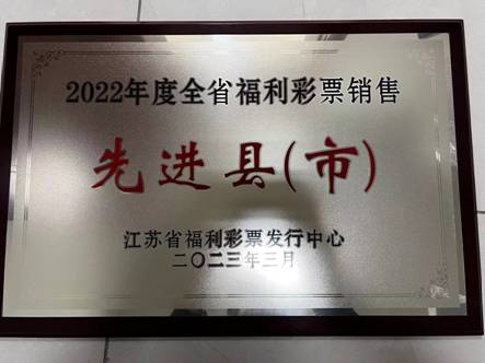 2022年,溧陽市福彩工作取得了8485萬元的銷售成績,受到江蘇省福利彩票發(fā)行中心表彰,被評(píng)為“2022年度全省福利彩票銷售先進(jìn)縣(市)”。