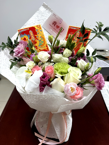 在溫馨浪漫的集體頒證儀式上,6對新人代表一起為愛宣誓、暢想未來,并收到了特制的“福彩花束”。由刮刮樂套票“囍”點綴而成的花束,寓意美好和幸運,傳遞了福彩對新人們的濃濃祝福。